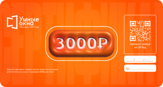 Дополнительная скидка в размере 3000 рублей на заказ окон. Можно получить в качестве «секретного приза» от замерщика.