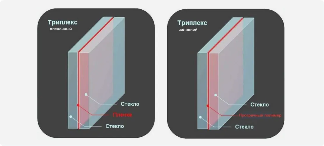 Выясняя, что такое стекло триплекс, нужно начать с технологии производства. Этим процессом оно отличается от прочного закаленного аналога. Производство заключается в соединении двух стеклянных листов с помощью пленки или полимерного состава. Способы различаются: