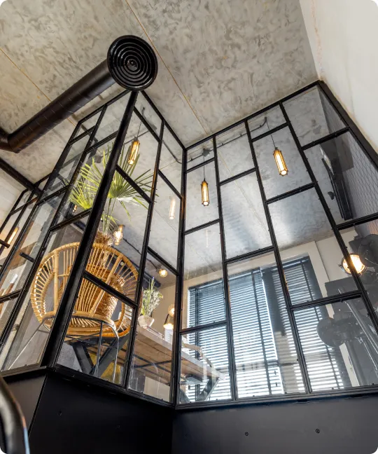 Панели из высокопрочного стекла используют, чтобы разделить пространство в коммерческих и административных зданиях: