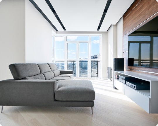- Стандартный белый профиль вполне подходит для такого направления, под заказ его можно заламинировать черной, серебристой или другой пленкой.