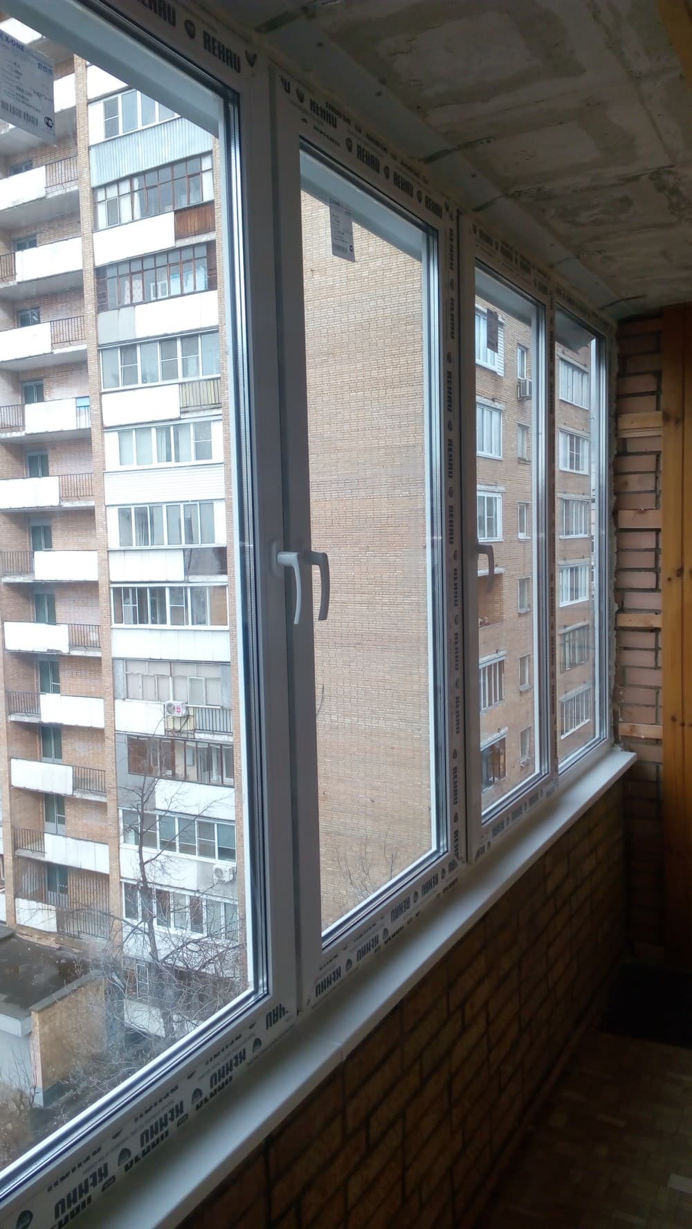 Выполненные работы: Демонтаж старых окон, Остекление балкона профилем REHAU Delight, Установка кладки и утеплителя, Проводка электрики и отделка балкона, Вывоз мусора